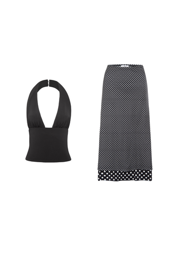 MATHILDE TOP + MARIA SKIRT - BLACK/BLACK AND WHITE POLKA DOT