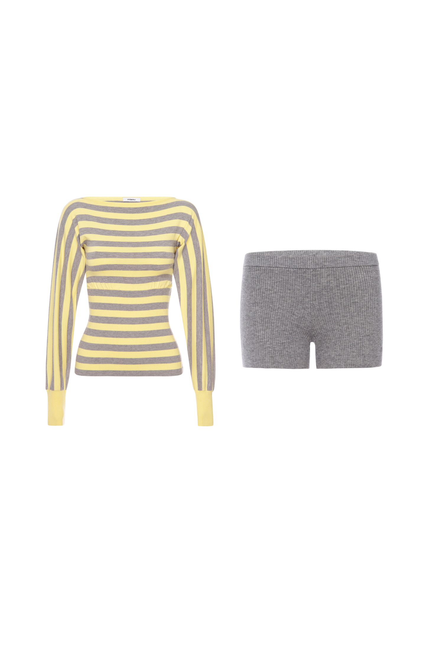 Set includes Odessa Top in Butter Stripe and Booty Short in Mink.