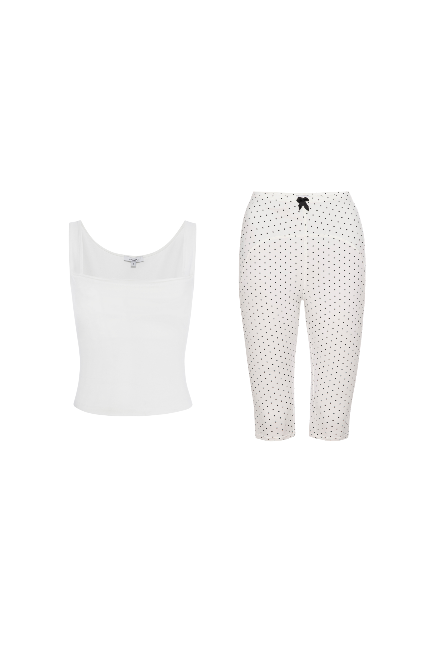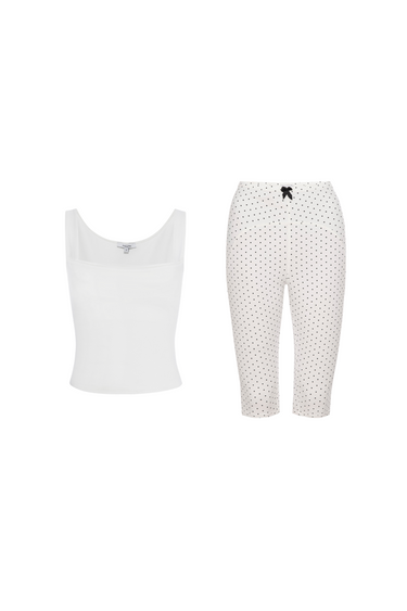 Set includes Luna Top in Dove and Jane Short in Black Polka Dot.