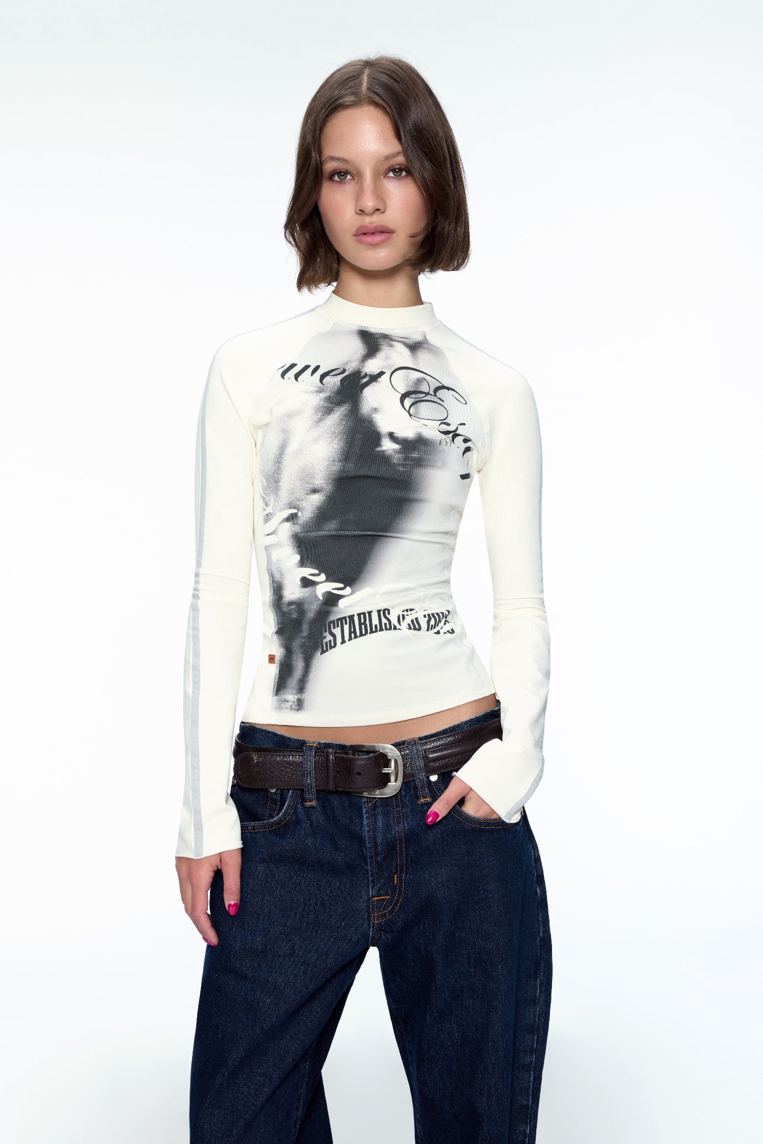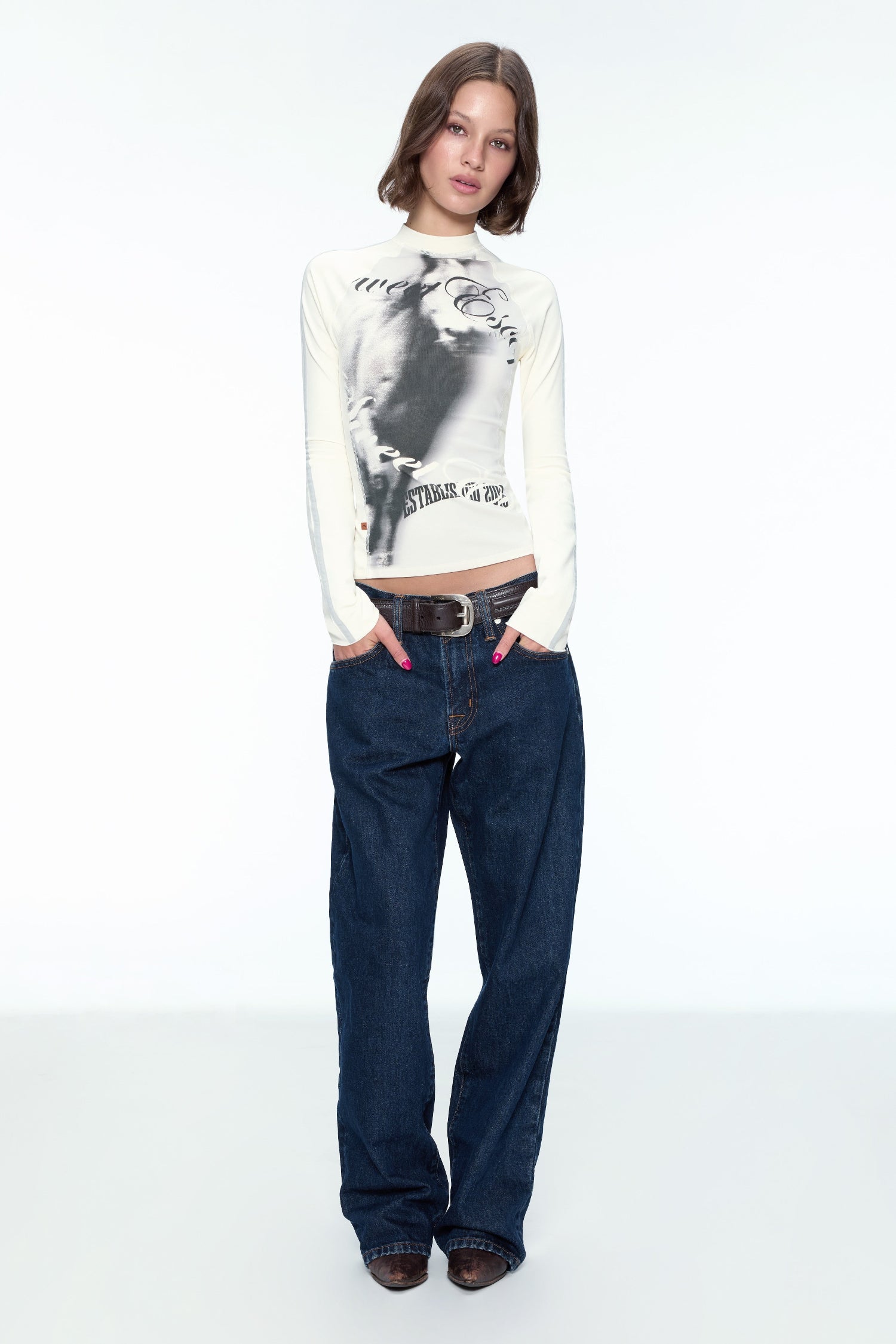 Preorder. Meet Sweet Escape — the central print of our holiday collection and a love letter to freedom. We brought her to life on the Madeline Tee, a sculpted raglan-shouldered silhouette with signature side panels that frame the body. Denim’s muse, reborn.